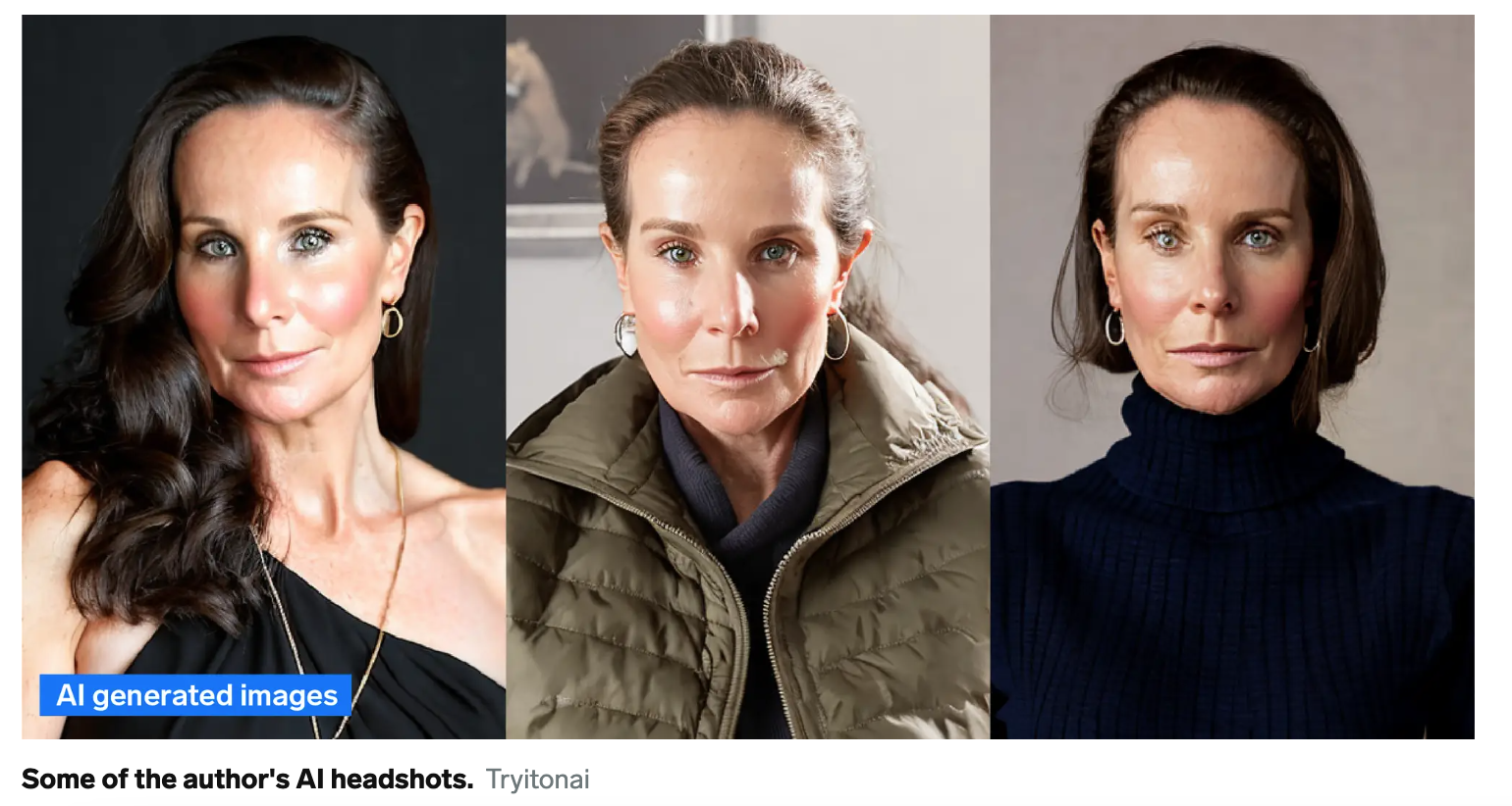 Rebecca Knight, a writer for the Business Insider, shared her AI-generated headshots. She found hilarity in the results. While AI was able to give her different hairstyles, locations, and clothing, it took away the life in her eyes, it plasticized her skin, and it took away any genuineness in her features.